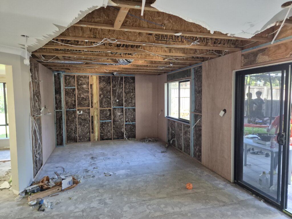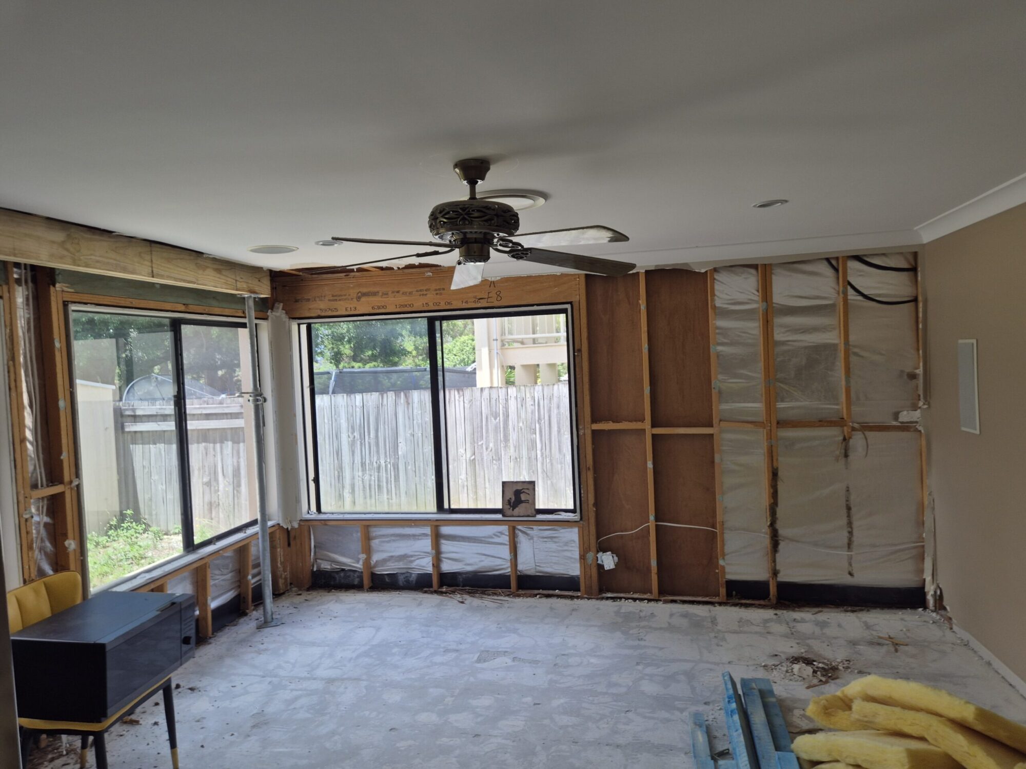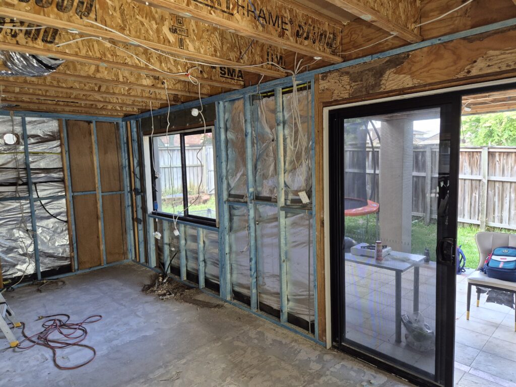 See the progress shots below to replace termite damaged wall framing, completed recently in Brisbane’s suburb of Eight Mile Plains